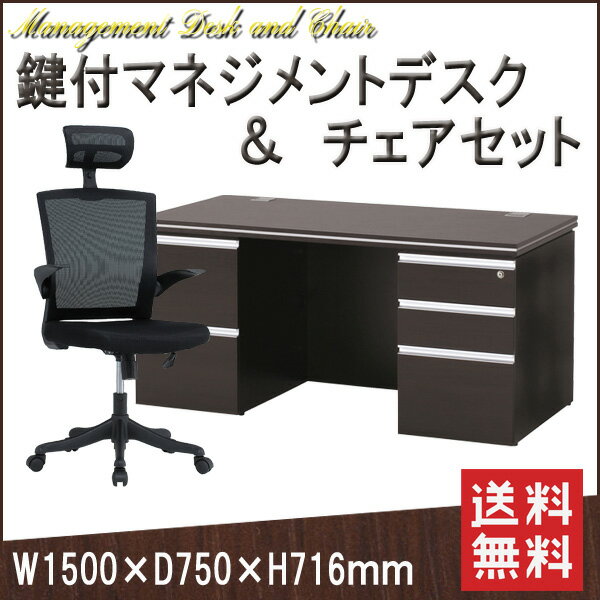 【お取寄】《2点セット》MTB ビジネスデスク&チェアセット《1枚天板タイプ》木製 役員机 メッシュチェア マネージメントデスク 鍵付引出し《イノウエ》【送料無料】【要組立】 【SUMMER_D1808】 【メール便不可】