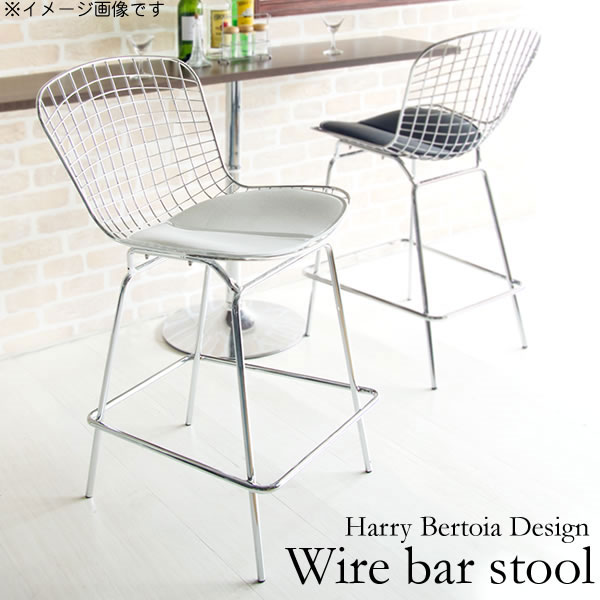 ワイヤーバースツールのみ ワイヤーメッシュチェアー カウンターチェア リプロダクト レザー座面 レザーシート クッション付き ミッドセンチュリー ブラック ホワイト おしゃれ かっこいい チェア チェアー いす イス 椅子 送料無料 【QSM-160】【JG】
