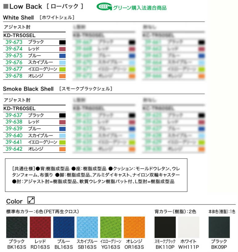 ※ 背もたれ : 樹脂メッシュタイプ ( 全2色 ) ※ 座面 : クッションタイプ ( 全6色 ) 表示価格は 、 1脚分 の販売価格となっております。