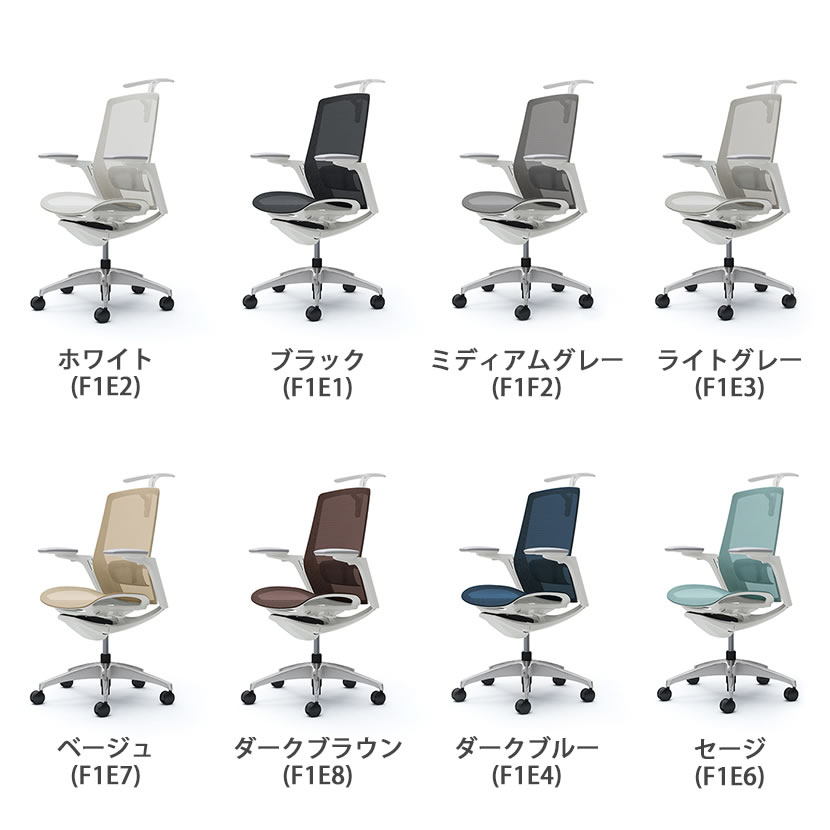 オカムラ フィノラ C786CZ カラーコード対照表F1E0(パープル)F1E1(ブラック)F1E2(ホワイト)F1E3(ライトグレー)F1E4(ダークブルー)F1E5(グリーン)F1E6(セージ)F1E7(ベージュ)F1E8(ダークブラウン)F1E9(レッド)F1F2(ミディアムグレー)F1F5(ダークグリーン)F1F8(オレンジレッド)F1F9(イエロー)軽快なデザインとエルゴノミクスに基づく機能の融合を果たした次世代チェア 「Finora」は、上質な座り心地と高い操作性を実現しながらも、よりシンプルで軽快なデザインを追求しました。