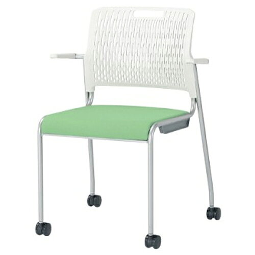スタッキングチェア 肘付き キャスター付き 背ホワイト ミーティングチェア 会議イス オフィス チェア メッシュチェア パソコンチェア 積み重ね KC-1678