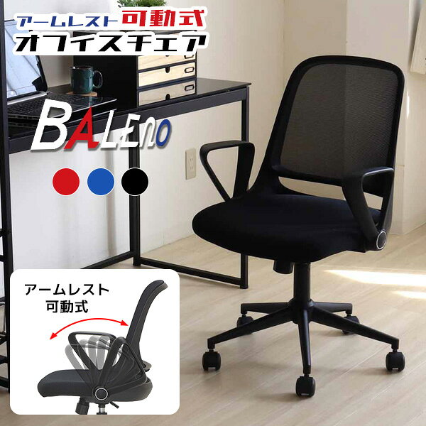 可動式 アームレスト メッシュチェアー 【送料無料】 オフィスチェア おしゃれ キャスター 安い 激安 格安 事務椅子 肘付き椅子 デスクチェア レッド ネイビー ブラック